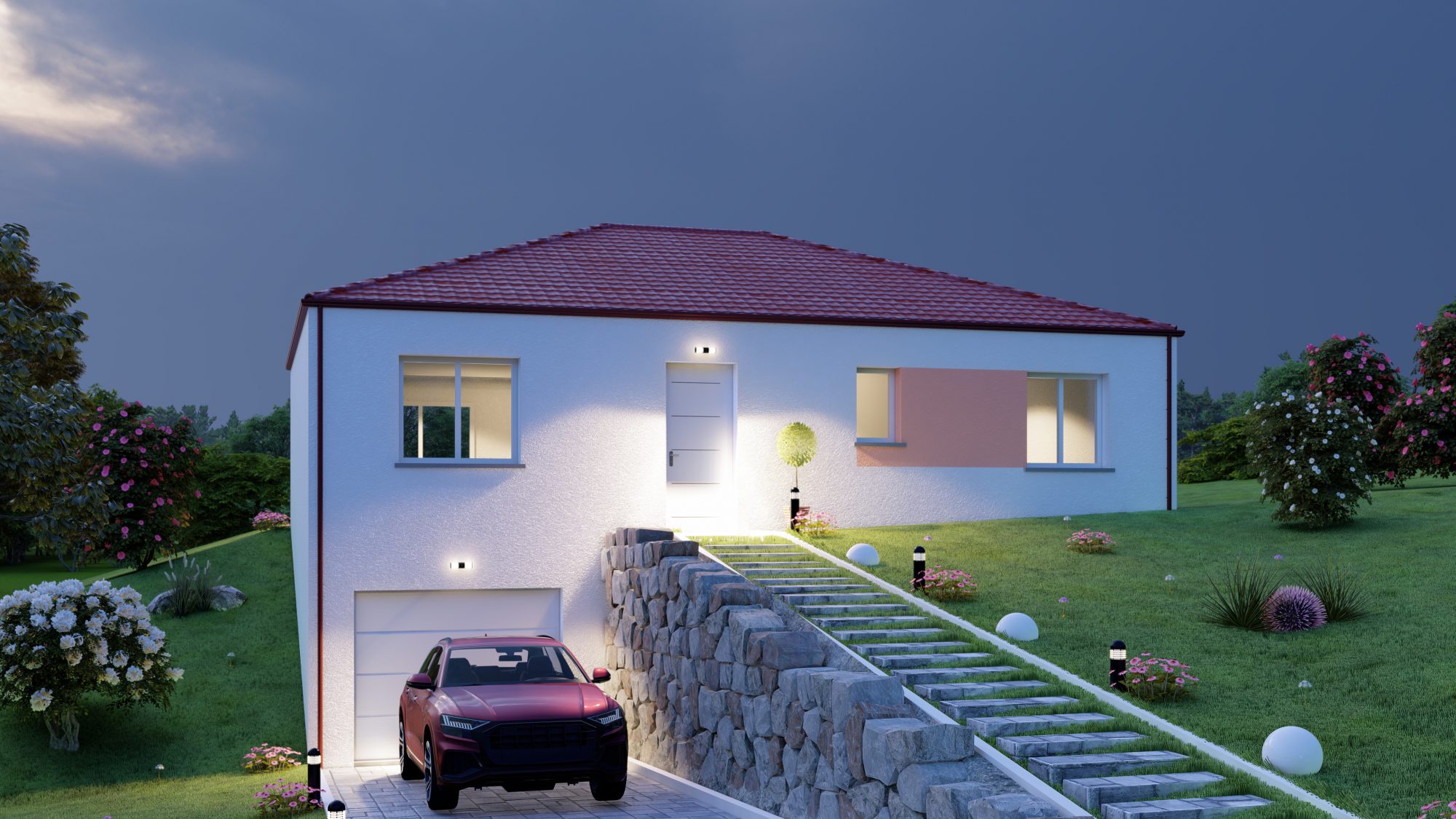 ALCOR est une maison en sous-sol. Elle se compose d’une surface habitable de 78 m² et d’un grand garage avec une buanderie de 75 m² en sous-sol. Elle possède une pièce de vie 35 m², trois chambres, une salle de bain et un WC séparé pour un confort maximal.
