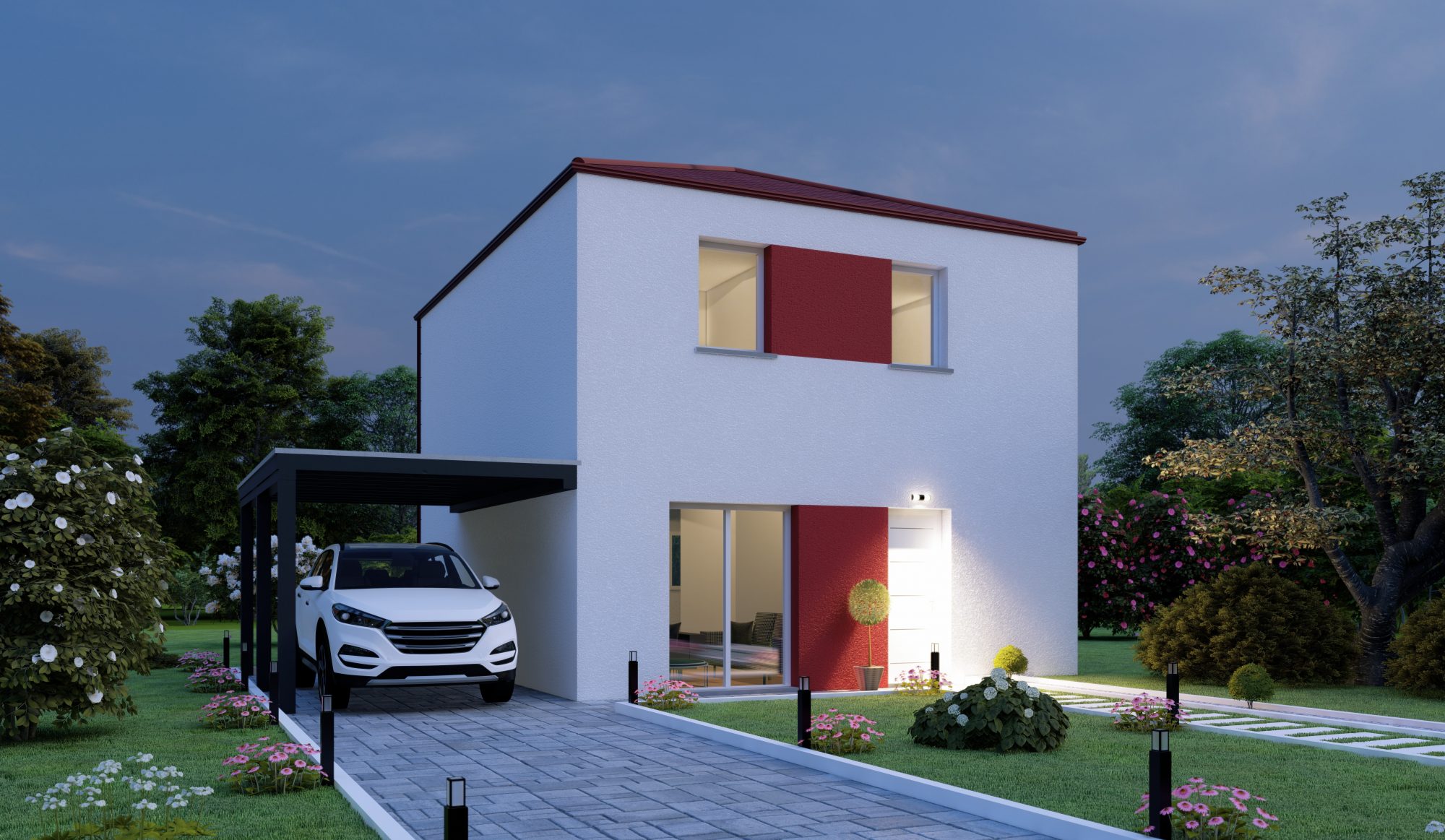 VEGA est un modèle s’adapte à la vie moderne grâce à son plan désignée pour séparér la partie jour et la partie nuit. La pièce de vie accueillez-vous à un espace grande et illuminée qui vous donnera envie d’y passer toute la journée. À l’étage il y a trois chambres pour y passer le reste de la journée. En plus, ce modèle est très utile aussi avec son cellier pour rangement.